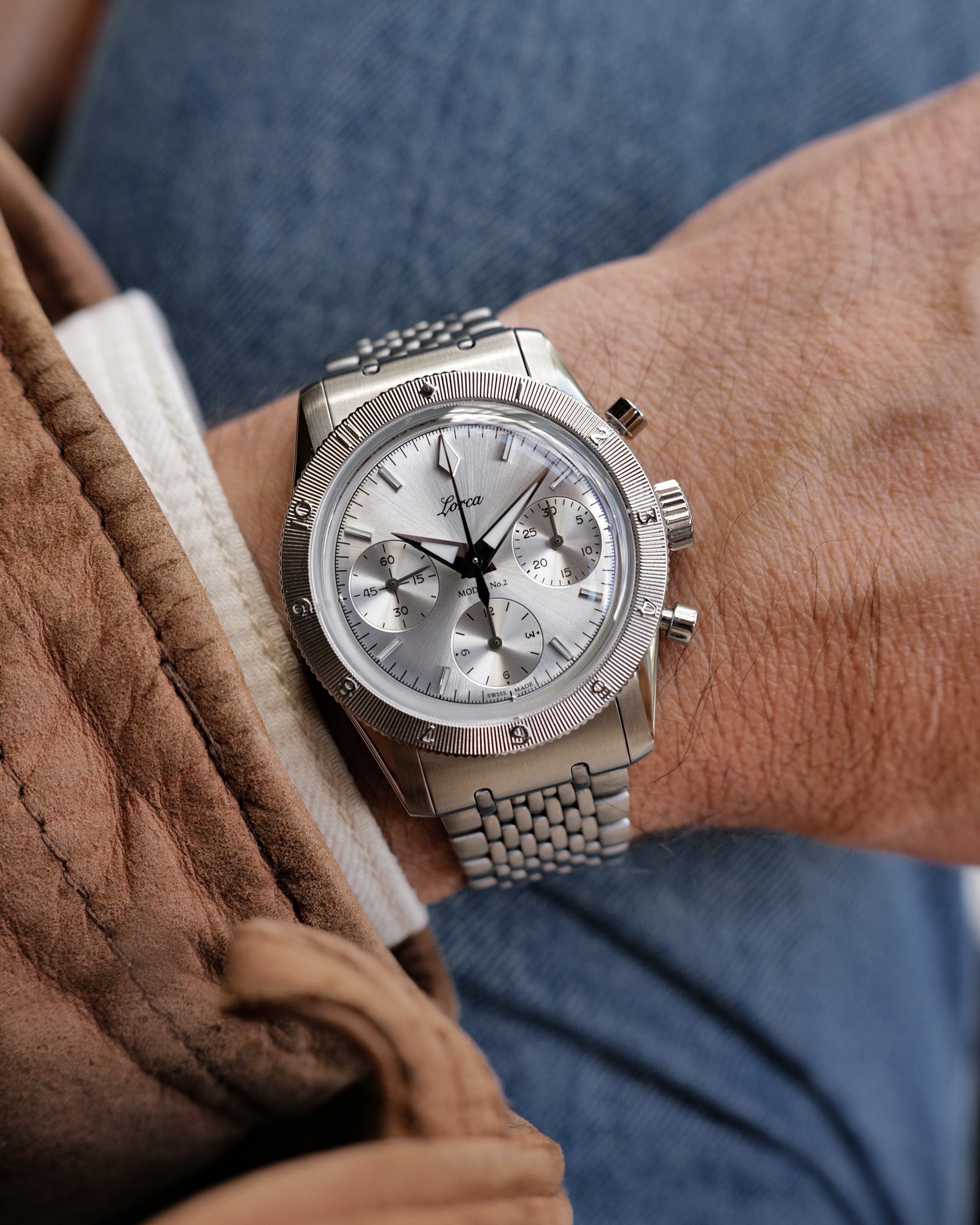 Water resistance—one of Lorca’s high priorities—is rated at 100 m, thanks to a screw in, solid case-back which has again been left uncluttered to provide a clean palette for personalized engravings.